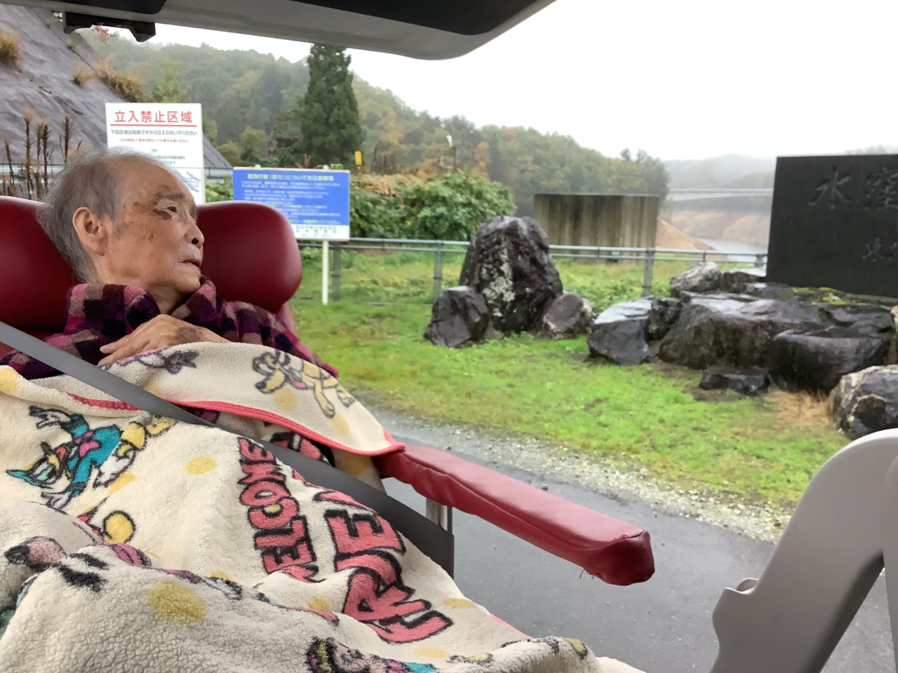 秋の紅葉ドライブに出かけました。紅葉にはまだ早く、雨模様の日でした。暖かくして、皆さんでお出かけ。雲とダムのコントラストがきれいでしたね✨