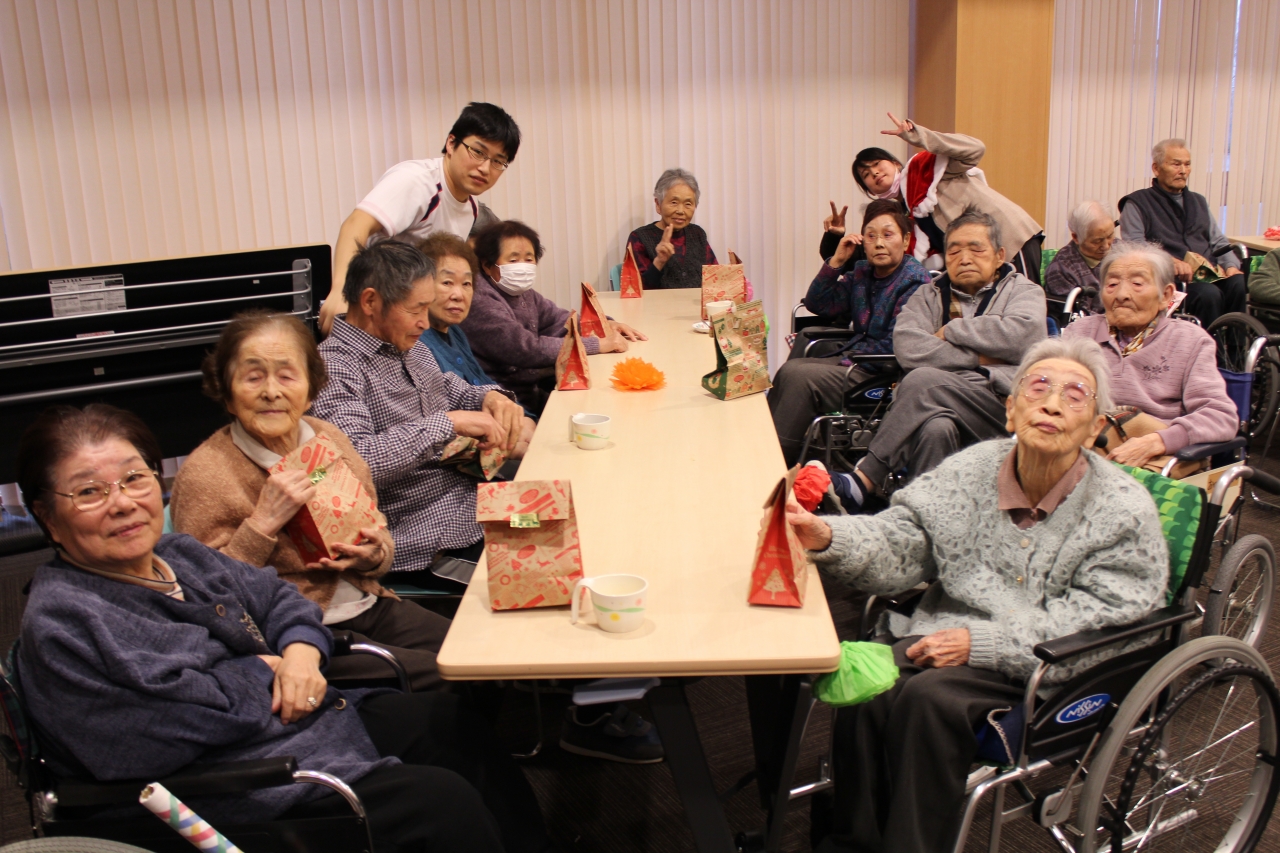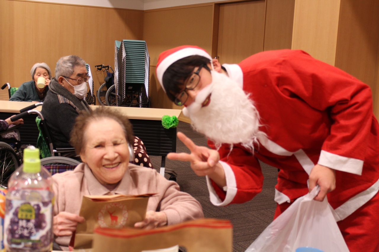 最後に職員サンタからささやかなプレゼント!皆様、嬉しそうに受け取っておられました。