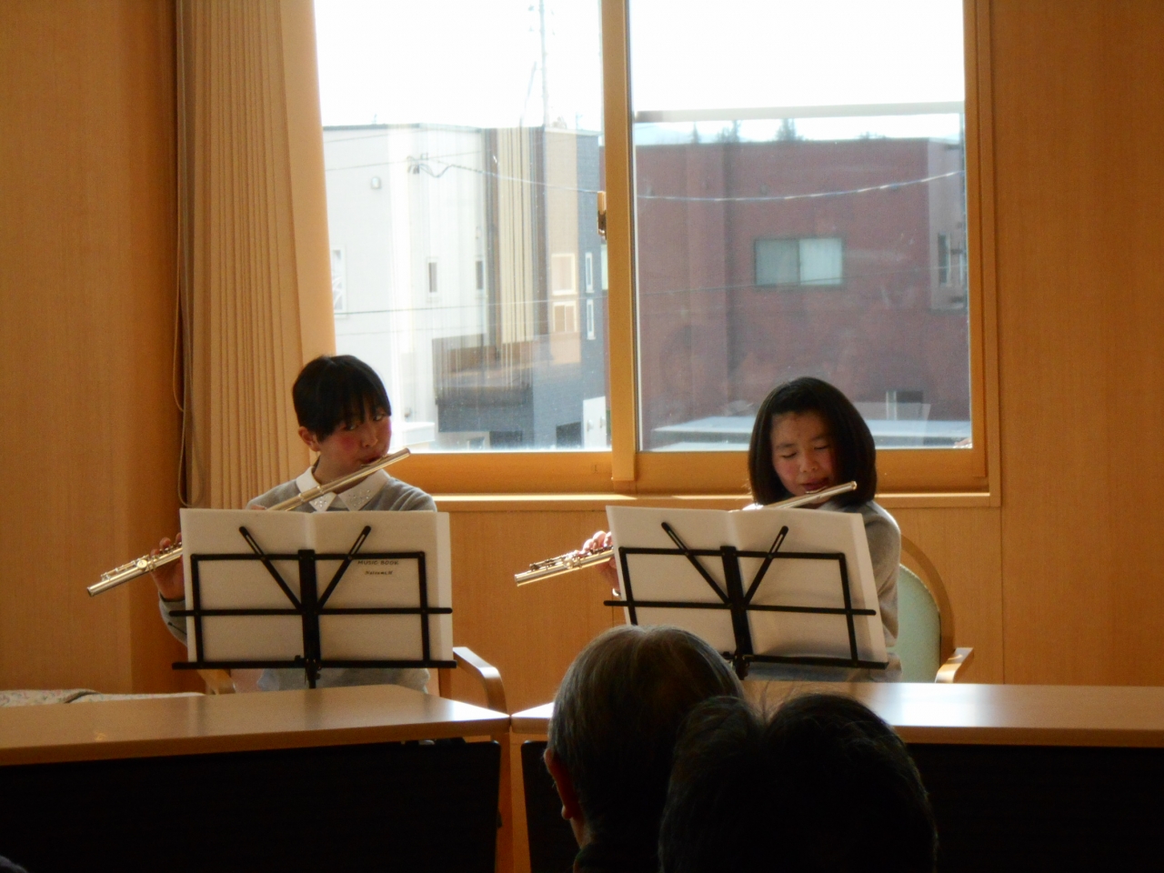 3月27日(日)可愛い2名のボランティアが来所され、フルートの演奏をしていただきました。