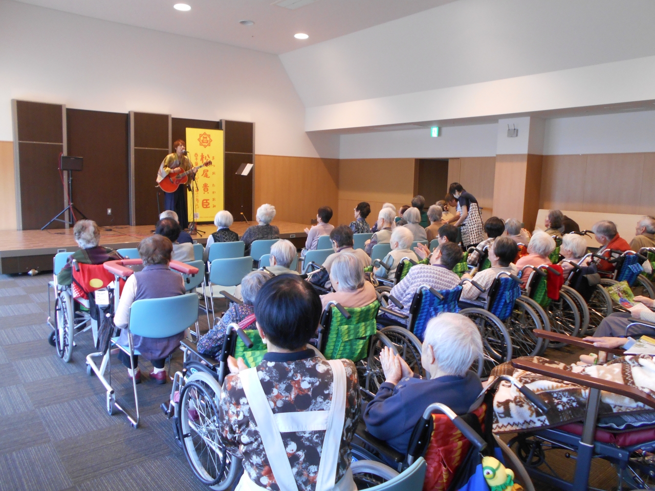 生演奏とともに響く力強く優しい歌声で入所者の皆様、職員ともに、とても素敵な時間を過ごすことができました!