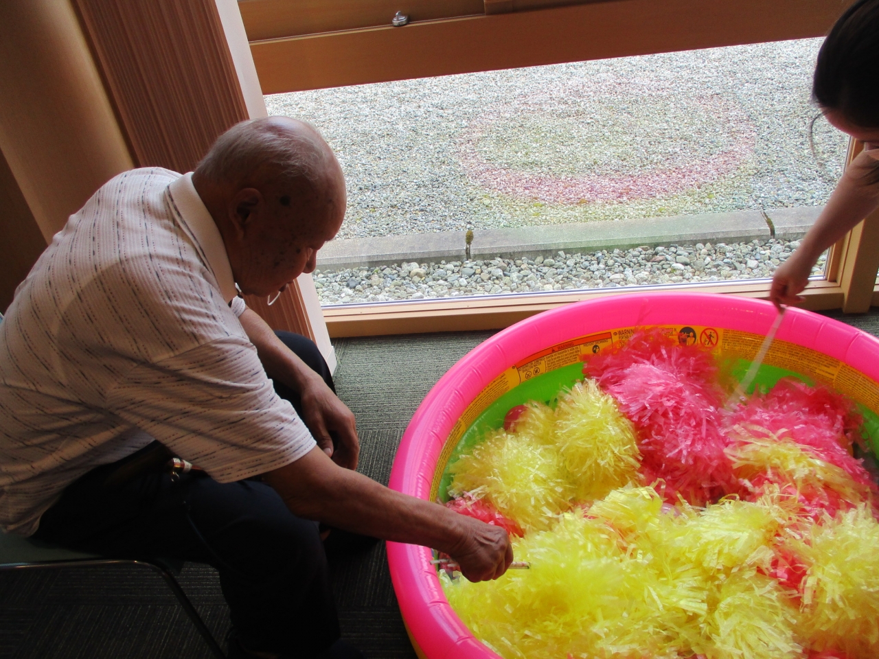童心にかえって水風船釣り!皆さま真剣です。自宅に持ち帰ってお孫さんにあげると張り切っていた方もいらっしゃいました。
