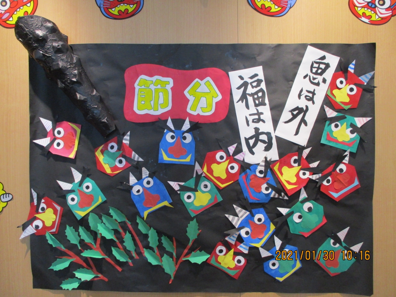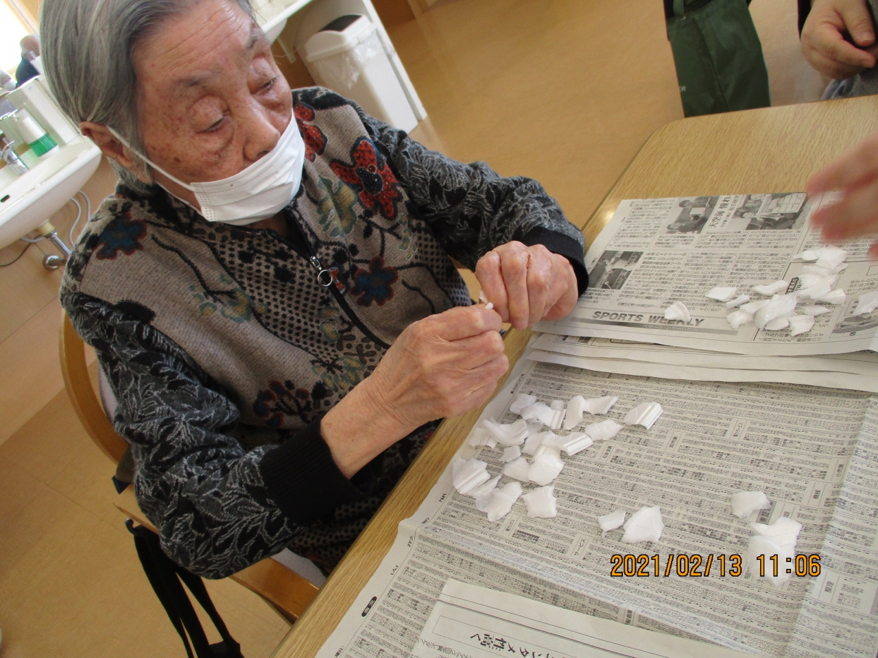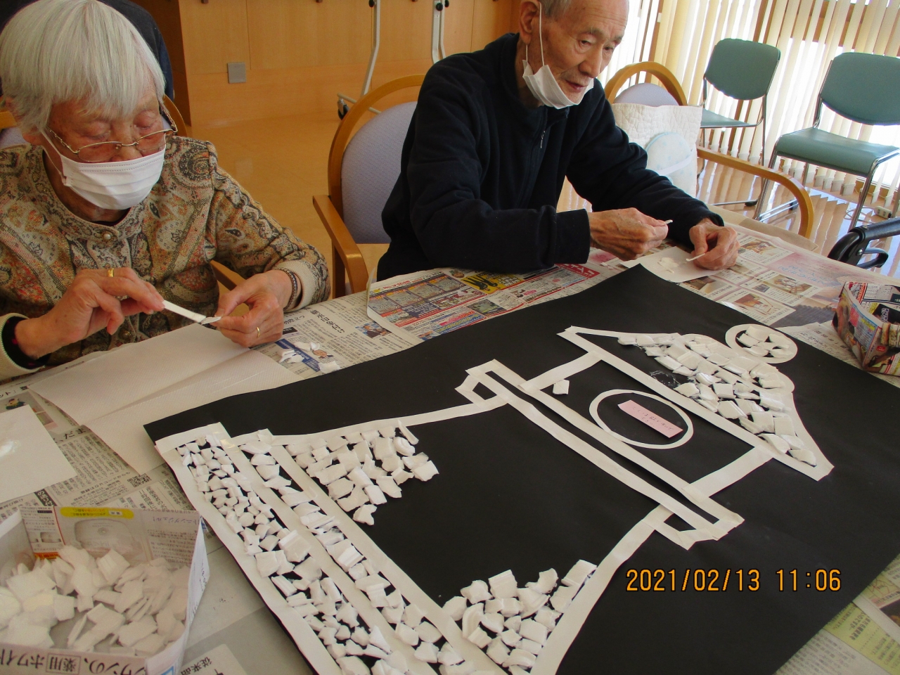 デイサービス回春堂花沢では2月の節分や雪灯籠祭りに合わせて、季節感のあるレクリエーション活動を行っています。2月の節分に向けて、皆様で鬼面作りを行い、豆まきを行いました。また今年はあいにく米沢の雪灯籠祭りは中止になってしまいましたが、気分だけでもと雪灯籠の壁画作りをしました。厳しい寒さが続きますが、春はもうすぐ…のはず、もう少しの辛抱です。みんなで笑い合って乗り越えていきましょう♪