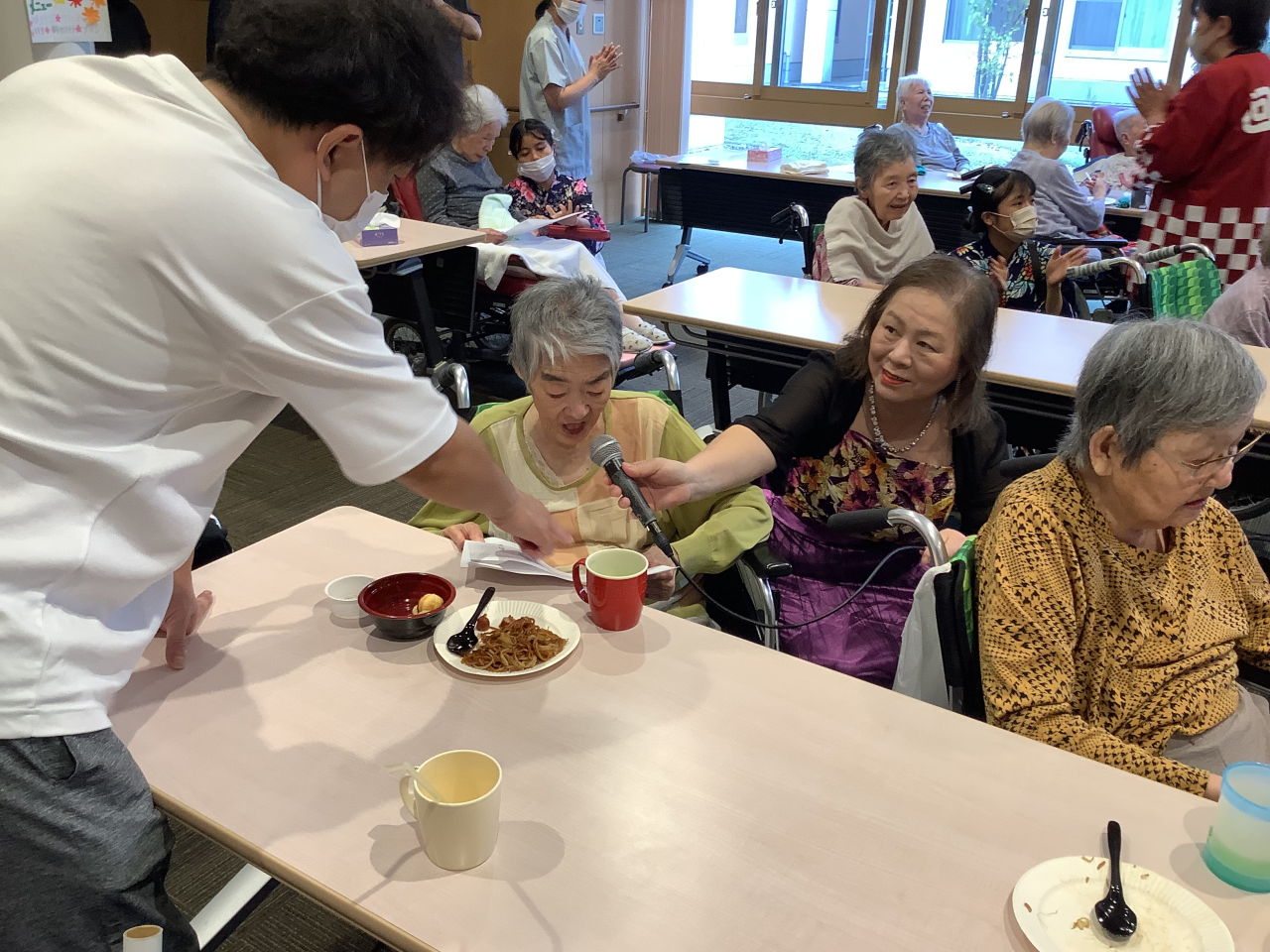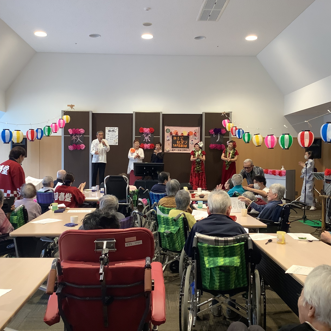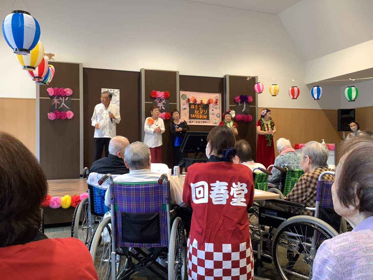 特別養護老人ホーム回春堂では、10月5日に秋祭りを開催しました。焼きそばやウインナー、鈴カステラにプリンなど、お祭りメニューがたくさん並んでいましたね。入居者様同士で談笑されたり、歌ったり、美味しいご飯を食べたり…盛りだくさんな1日になりました!